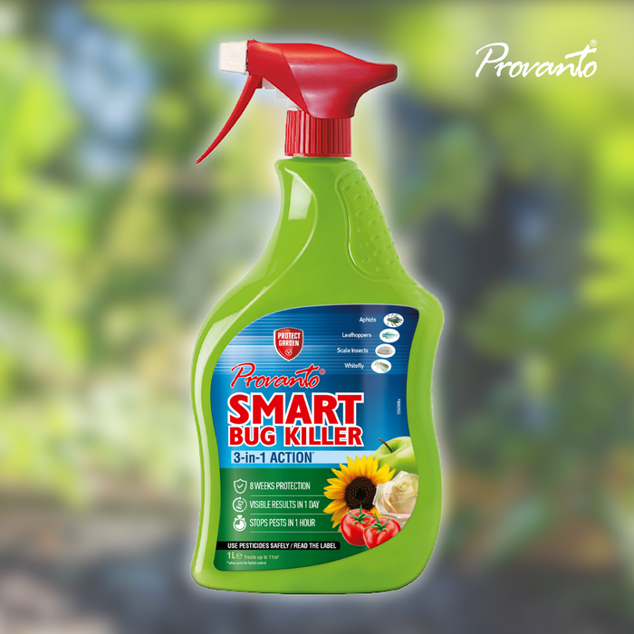 Provanto Smart Bug Killer is a powerful, long-lasting insecticide spray designed to protect your garden from a variety of pests. This advanced bug spray acts fast, stopping aphids from feeding within just one hour, with visible results for aphids in 24 hours. Its unique butenolide-based formula offers systemic insecticide protection that lasts up to 8 weeks specifically for aphids, ensuring long-term control. Ideal for controlling aphids, greenfly, blackfly, whitefly, scale insects, and leafhoppers, this versatile spray works as both a contact and systemic solution, providing thorough coverage to protect your plants from pests. With a reduced risk to non-target and beneficial insects, Provanto Smart Bug Killer is an environmentally conscious choice for gardeners. Use it as a targeted aphid and pest killer spray for your outdoor plants, and enjoy a healthier, pest-free garden with long-lasting protection against aphids.